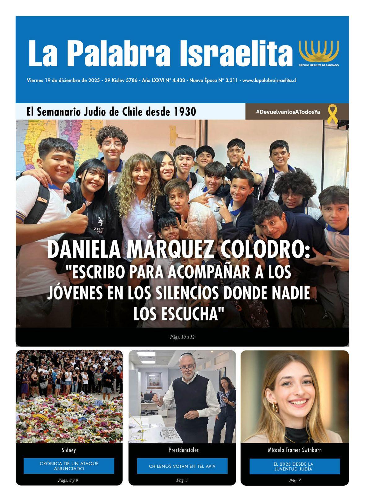 Como periodista, debo confesar que entrevistar a una colega y, además, a una novelista de gran trayectoria no es tarea fácil. Existe cierta aprensión —una mezcla de admiración y respeto— que puede volver difícil mantener la distancia necesaria para preguntar y escuchar. Pero con Daniela, todo fluyó con naturalidad. Su calidez, su mirada luminosa sobre el mundo y su forma de entender la literatura hicieron que la conversación se convirtiera en un encuentro por el amor a las palabras y la necesidad de contar historias.En un mundo acelerado y ruidoso, donde los jóvenes a menudo se sienten solos o incomprendidos, Daniela ha encontrado una manera única de acompañarlos: a través de la literatura. Periodista de profesión y autora de cinco novelas juveniles publicadas en Chile, México y Estados Unidos, combina oficio, sensibilidad y una profunda humanidad para abordar temas como la identidad, el duelo, las adicciones, abusos, amistad y la búsqueda de sentido. Su mirada está impregnada de valores que provienen de su historia familiar y de su judaísmo, donde la centralidad del hogar y la memoria tienen un rol esencial. Su obra ha recorrido colegios de todo el país, generando espacios de reflexión, empatía y diálogo en una etapa tan decisiva como la adolescencia. En esta conversación con La Palabra Israelita, Daniela comparte su camino, su método de creación y la emoción de encontrarse cara a cara con quienes leen sus libros.InspiraciónP: Daniela, cuéntanos un poco de tu historia personal y profesional.R: Nací en Santiago y soy trilliza, la única mujer de este particular equipo de tres. Crecer así fue un desafío y un privilegio. Tuve la suerte de hacerlo en un entorno profundamente intelectual: mis padres (Tita Colodro y Antonio Márquez Z”L) trabajaron mucho en comunicaciones y en el mundo académico, y en mi casa siempre hubo libros y música clásica sonando de fondo. Ese ambiente marcó mi infancia y sembró en mí el amor por la lectura, la curiosidad por las historias y la sensibilidad hacia el arte.Tengo dos hijos que están terminando la universidad y que han crecido viéndome multiplicar mis tiempos entre el trabajo, la escritura y el grabado. Y ya los veo replicando el modelo. Los dos estudian y trabajan en lo que les apasiona. Ellos son mi gran orgullo.En lo profesional, estudié periodismo y desde hace más de diez años trabajo en el Ministerio de las Culturas, donde lidero las comunicaciones internas y las relaciones institucionales. En paralelo, llevo 17 años dedicada a la literatura juvenil, con cinco novelas publicadas en Chile, México y Estados Unidos, con Planeta y Zig-Zag. Además, soy grabadora desde hace más de dos décadas y hace unos días estuve en una exposición colectiva con el Taller Lautaro en Casa Plan, en Valparaíso.Entre mi familia, el ministerio, la escritura y el grabado, siempre estoy en movimiento, y siempre voy a encontrar la manera de robarle horas al reloj.P: ¿Por qué comenzaste a escribir y por qué escogiste hacerlo para adolescentes?R: Cuando estaba en 5° básico, me costaba enganchar con lo que nos daban como lectura en el ramo de Castellano, que se llamaba así en ese entonces. Mi primer colon irritable fue cuando no pude terminar de leer “Perico trepa por Chile”. ¡Perdón Marcela Paz y Alicia Morel! Me costó terminarlo, y para mi sorpresa, no fui la única del curso. Entonces, un día le dije a una de mis amigas, con las que compartía el banco, “Cuando sea grande, voy a ser escritora”, pensando en crear historias más cercanas y de lectura más ágil. Lo decreté, y cumplí esa promesa. Primeras novelas y motivacionesP: En tus libros siempre hay un trasfondo humano muy fuerte. ¿Cuál fue el punto de partida para tu primera novela?R: Desde el comienzo tuve claro que quería acompañar a los adolescentes en sus temas más profundos. Mis libros son, para mí, una especie de “literatura de acompañamiento”. No quería solo entretenerlos o llenarles la cabeza de fantasías. Quería meter los pies en el barro y ver qué salía de ahí. Así, salieron temas como bullying, trastornos alimentarios, sexualidad, conflictos familiares, abandono, incomunicación con los padres, enfermedades crónicas, identidad de género, abusos, duelos, traiciones. El desafío ha sido siempre cómo narrarlos sin convertir la historia en un drama insoportable. Mi fórmula es el humor, la música y los referentes culturales de los propios jóvenes. Los protagonistas suelen ser amables y entrañables, un equilibrio necesario frente a la dureza de lo que enfrentan.P: ¿Tienes rituales o métodos de trabajo a la hora de escribir?R: Nada de rituales, ni planificación rígida. Lo que tengo es un enano que vive en mi cabeza. Él me va dictando ideas de posibles historias, sus giros, sus personajes, familias, y conflictos. Y cuando una idea se instala de verdad, investigo, leo, entrevisto a gente, hasta que la historia toma forma. Mientras tanto, el enano insiste desde su mecedora. Y cuando ya está insoportable y no me deja ni leer, me siento a escribir. La verdad es que él dicta y yo transcribo, jaja.Identidad y creación literariaP: ¿Tu historia familiar o tu judaísmo se reflejan en tus libros?R: Mi biografía personal no aparece en mis novelas. Me impuse no escribir sobre mí misma. ¡A quién podría interesarle mi vida! Lo que me apasiona es inventar mundos completos.El judaísmo, en cambio, atraviesa todo lo que hago, sobre todo en la centralidad de la familia en la vida. Desde mi primera novela decidí que cada historia incorporaría una colonia distinta, como reflejo del mestizaje chileno: en Si tú me miras y Si tú me escuchas, la alemana; en Sin recreo, la italiana; en Sin azúcar, la china; en Tal como soy, la judía; y la próxima será la japonesa.Tal como soy, publicada en enero, ocurre en plena pandemia, como una manera de no olvidar lo que vivimos y a quienes perdimos. Una de sus protagonistas es Malki (Malkat