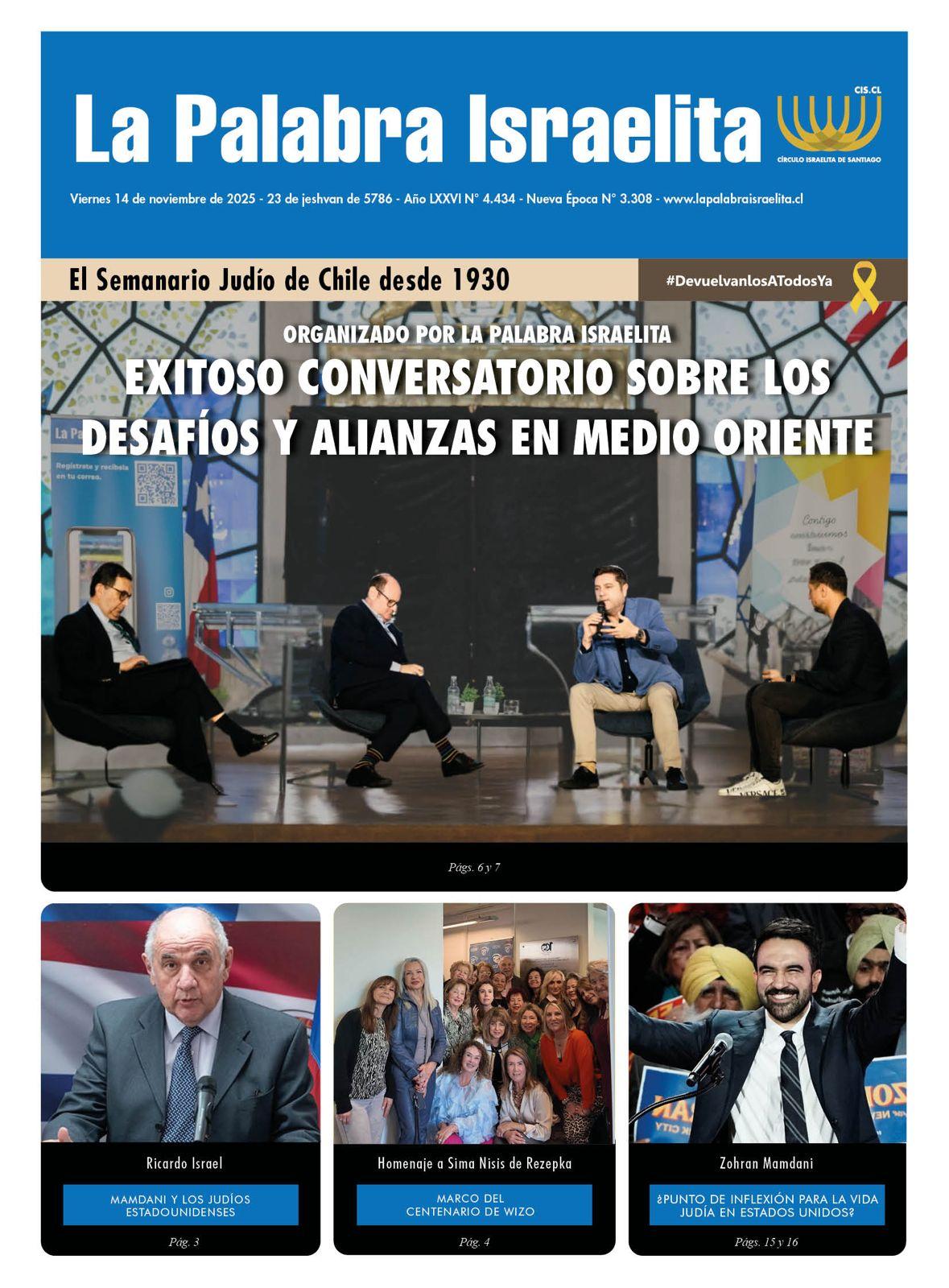 El 11 de noviembre se realizó el conversatorio “La nueva realidad en Medio Oriente”, organizado por La Palabra Israelita y realizado en la sinagoga del Círculo Israelita, en el que tres expertos analizaron los cambios geopolíticos, estratégicos, políticos y comunicacionales que enfrenta el mundo.El panel estuvo compuesto por tres panelistas de lujo: Peleg Lewi, embajador de Israel en Chile, John Griffiths-Spielman, exgeneral de Ejército, licenciado en Ciencias Militares, máster en Seguridad Internacional (Universidad de Georgetown) y doctor en Estudios Americanos (USACH), y Robert Funk, doctor y magíster en Ciencia Política (London School of Economics,) y profesor asociado en la Facultad de Gobierno de la Universidad de Chile. La conversación fue conducida por el rabino Ari Sigal.Sergio Navón, director de la Palabra Israelita, destacó el rol de los medios de comunicación como vehículos de conocimiento, y explicó que esa convicción fue la motivación para organizar el panel.Alianzas regionales y realineamientosEn la instancia, el embajador Peleg Lewi enfatizó el cambio en las dinámicas regionales y la necesidad de ampliar alianzas más allá de las tradicionales. Destacó que hoy emergen socios relevantes en la región: “El proceso de normalización que tuvimos con Bahréin y los Emiratos Árabes, ha sido exitoso. Ellos resultaron ser los mejores aliados de Israel en los últimos dos años. No hubo manifestaciones antiisraelíes en esos países; la única compañía aérea que siguió volando durante toda la guerra contra Israel fue Flydubai; no devolvieron embajadores; no aplicaron sanciones; no hay BDS. Nuestros mejores amigos, al final del día, fueron Bahrein y los Emiratos. Si pudiéramos agregar a Arabia Saudita, estaríamos mejor”, explicó.Lewi abordó también la complejidad del conflicto con Hamás y reflexionó sobre la necesidad de un Estado palestino que no represente una amenaza. “Han tenido cerca de 13 oportunidades de conformar un Estado palestino, empezando el 29 de noviembre de 1947. Hoy necesitamos un vecino que no nos pueda amenazar”, subrayó.“From the river to the sea we will always be…" los israelíes no se irán a ninguna parte, y los palestinos tampoco, por lo tanto, tenemos que aprender a vivir, y para ello se necesitan acuerdos con países que den garantías”, dijo.De la inteligencia a la política: lecciones para ChileEl ex general John Griffiths-Spielman centró su intervención en las lecciones militares y de inteligencia que pueden extrapolarse de Israel a otros Estados. Advirtió que Chile está muy lejos de contar con un sistema de inteligencia robusto e integral: “La inteligencia puede informar, pero el nivel político tiene que actuar”, afirmó.Desde la perspectiva geoestratégica, Griffiths-Spielman consideró los últimos años como un periodo de cambios decisivos en Medio Oriente y recalcó que, desde lo militar, lo ocurrido constituye “el cambio geopolítico y militar más importante en la región en las últimas décadas”, y que este escenario es favorable a Israel.En clave local, advirtió sobre el aumento de conflictos en el mundo y anticipó un escenario “no muy pacífico”. Aunque se dice que Sudamérica es la región más pacífica del mundo en términos de conflictos armados, dijo que, a la vez, es la región más violenta: “Aquí se produce el 85% de todos los secuestros en el mundo y los niveles de criminalidad están disparados”. Mucho de esto, agregó, se debe a que “los Estados son frágiles y les cuesta hacer frente al crimen y eso los lleva a recurrir a las Fuerzas Armadas como una segunda opción de seguridad, lo que termina degradando tanto a las FF.AA. como a las de orden”, aseguró.En ese sentido, resaltó que Israel tiene un Estado robusto y ha sido eficiente en el uso de la fuerza para lidiar con una situación tan compleja como la que impuso Hamás, explicando que ello responde a amenazas no convencionales, motivadas por razones políticas-terroristas.Narrativas, juventud y comunicaciónEl académico Robert Funk puso el acento en la batalla de las narrativas y en la influencia que tienen las nuevas generaciones en el discurso público. “Hemos perdido una generación de jóvenes que se ha sentido seducida por discursos que hablan de genocidio porque recurren a la emoción; eso es un gran problema, porque ellos ocuparán cargos de decisión en el futuro”, sostuvo. Por ello, enfatizó que las estrategias de Israel ya no deben limitarse al poder militar, sino que requieren políticas comunicacionales y acciones culturales que transformen percepciones.En esa línea, John Griffiths se refirió al ciberespacio como “una quinta dimensión de la fuerza”, que es digital, donde cuesta identificar lo verdadero y lo falso. Lo catalogó como “otro desafío para el que debemos preparar a la nueva generación. El poder de lo comunicacional es brutal y los comandantes deben entender esto”, expresó.Relación de Chile e IsraelEl embajador Lewi destacó la relación de más de 70 años entre ambos países y recordó que el presidente Piñera decía que hay una sinergia especial entre Israel y Chile. Esto lo ejemplificó aludiendo a la Comunidad Chilena de Israel: “Es la comunidad más coherente que hay, de todos los países americanos y de todos los países europeos. Lo que hacen es muy importante: están presentes, Chile está siempre presente. Y para Chile creo que Israel también es muy importante”, destacó.John Griffiths recordó un hecho que quizás pocos tenían en sus registros: cuando Chile enfrentó dos graves crisis en 1978, bajo restricciones de EE.UU. e Israel prestó apoyo. “Eso no debemos olvidarlo”, dijo enfático, y criticó la reciente intención de “diversificar” la relación militar: “Eso no se compra, se construye una relación estratégica, y cambiar eso toma décadas”.Por último, advirtió sobre la previsibilidad de nuevas tensiones entre Occi